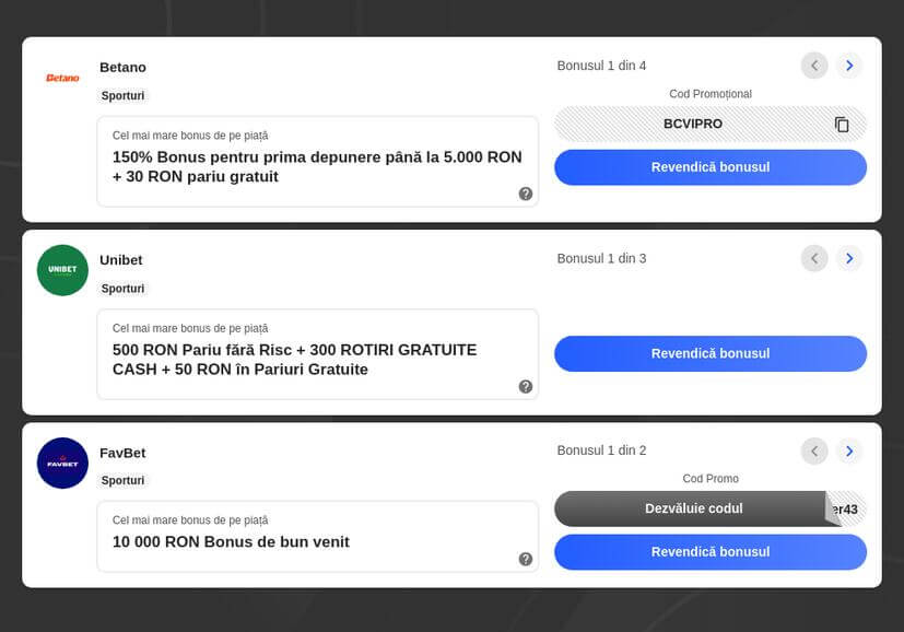 Cele mai bune oferte de coduri promoționale pentru pariuri și casino acum: