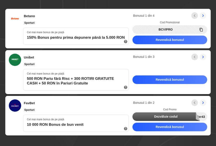 Și pentru jucătorii din Moldova noi am pregătit un articol despre Moldova Cod Promoțional în care veți afla care sunt codurile de bonus pentru cele mai importante case de pariuri online din Republica Moldova.